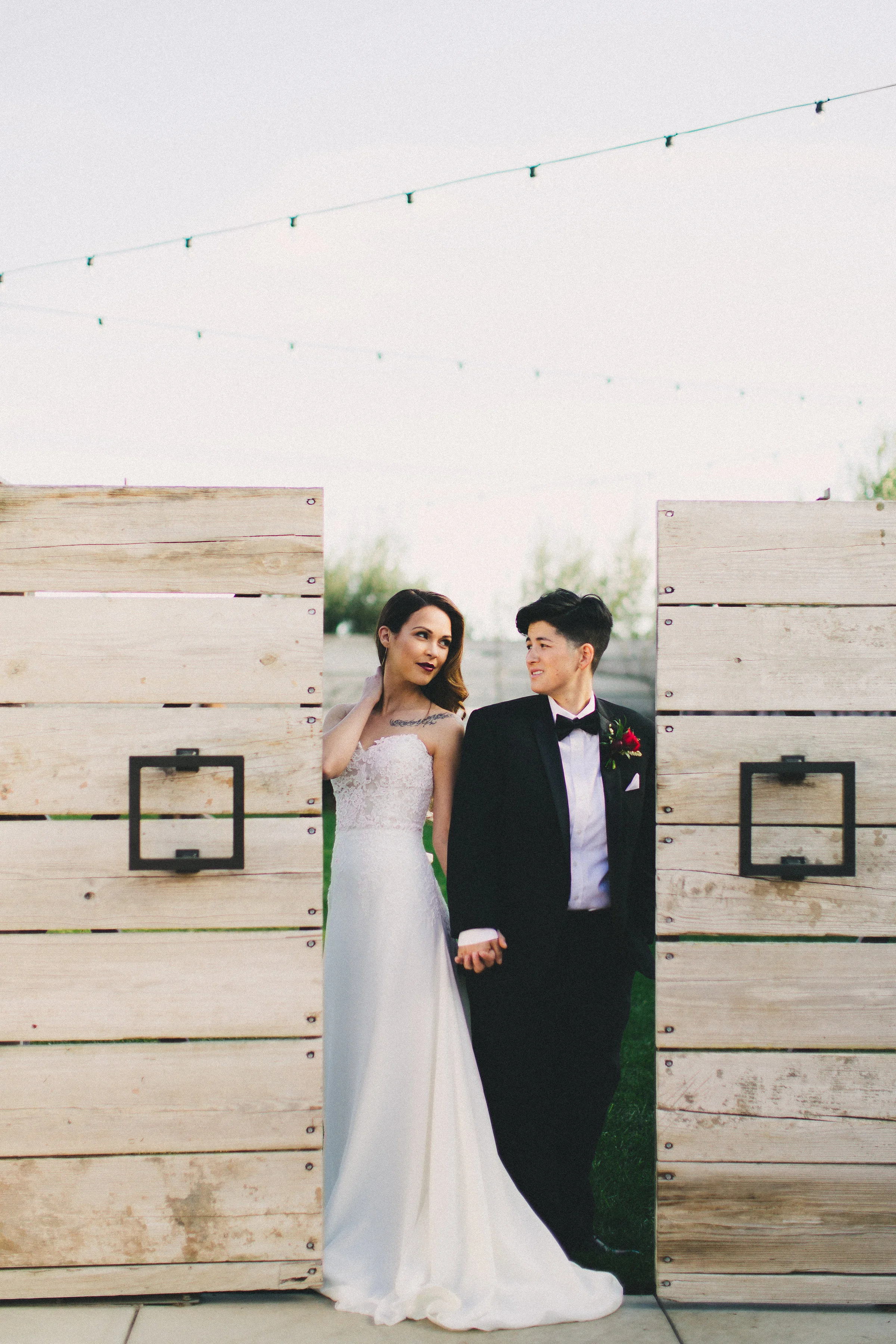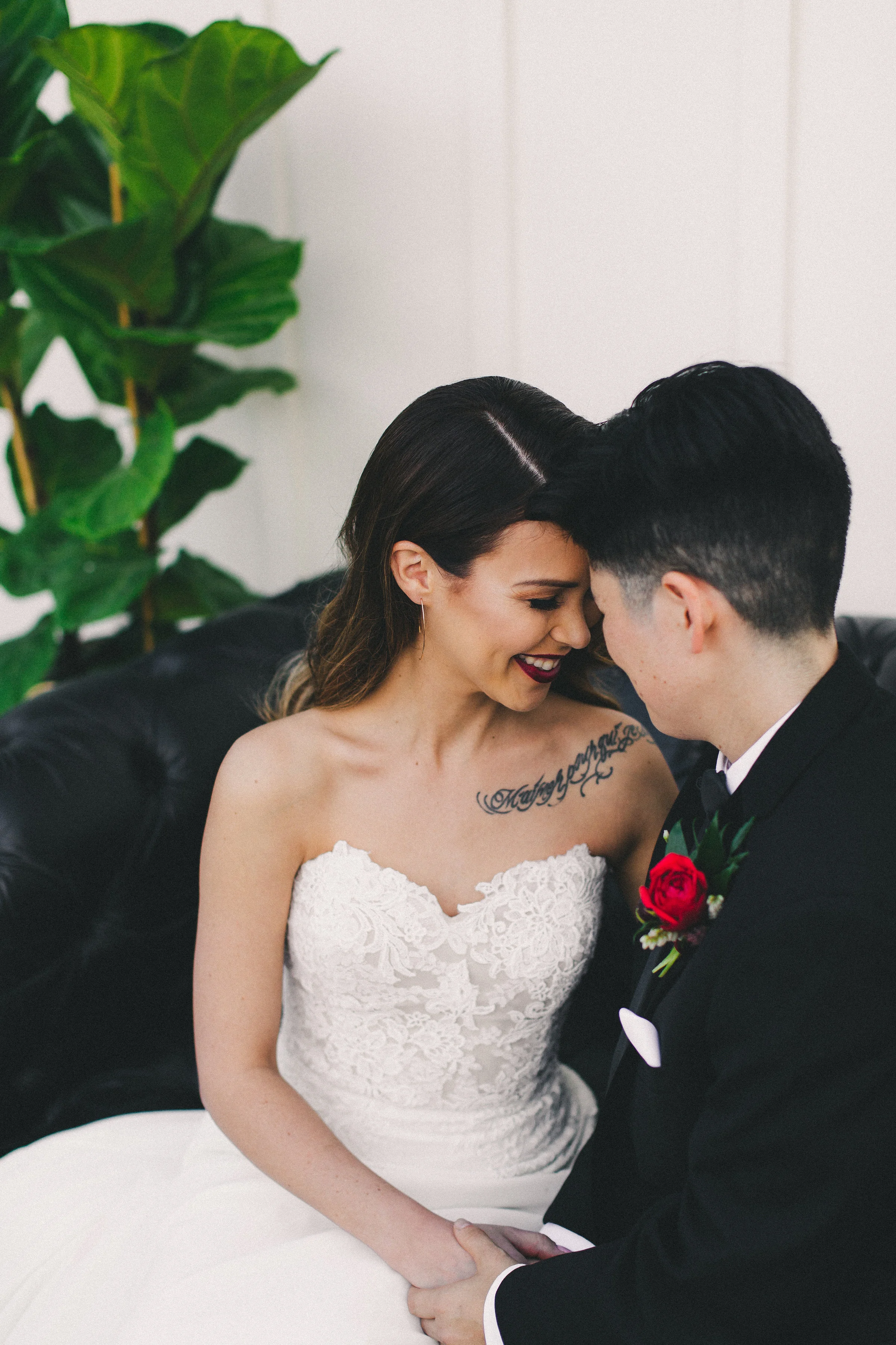 We loved being a part of this shoot and dressing up half of this adorable duo! Nicole and Nichole are a real married couple but they don't have photos from their wedding day so the fact that we could play a very small part in creating photos that they'll have forever is so special! You can really feel the love! Colleen from Eventful Wedding Planning put together a beautiful shoot with stunning florals by Sprigs Floral Design and a delicious spread by Flora and Fauna Catering. And of course Sarah Kathleen captured it just perfectly!