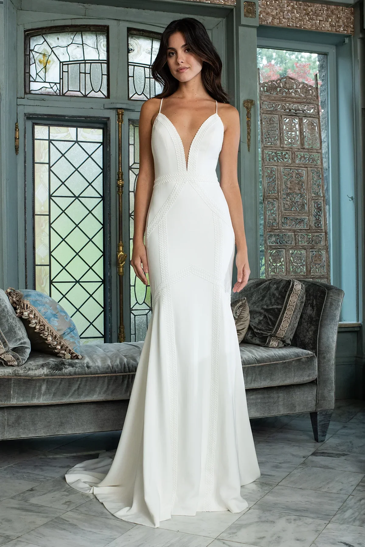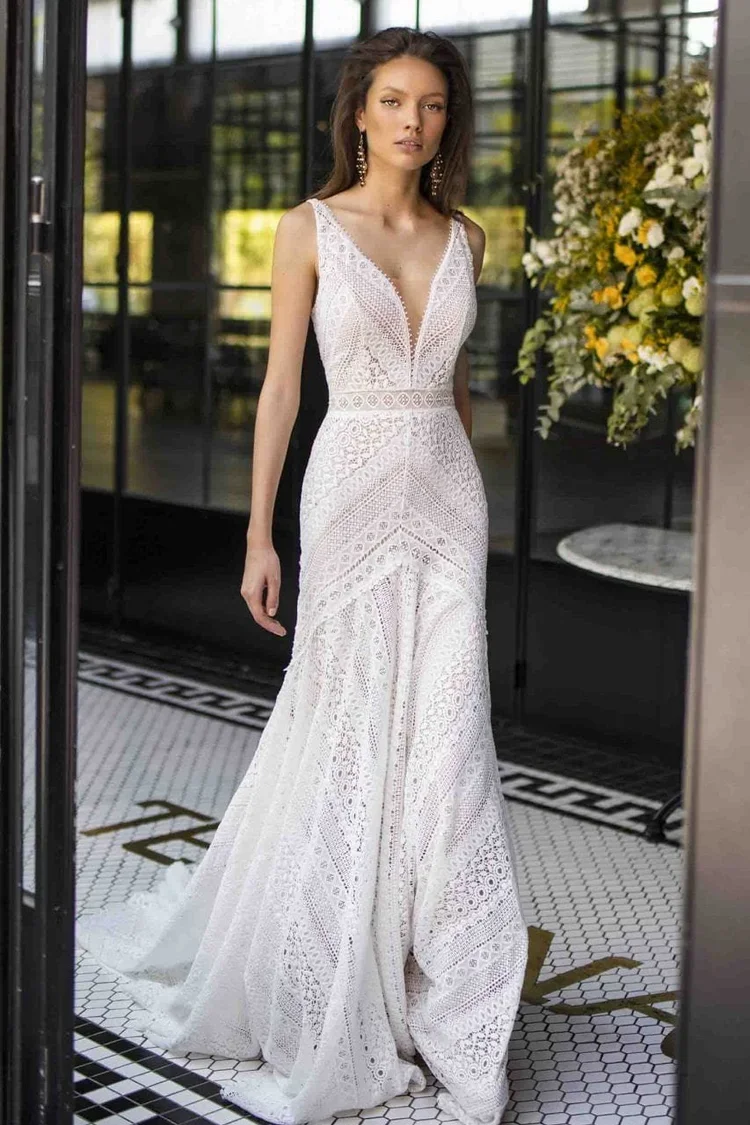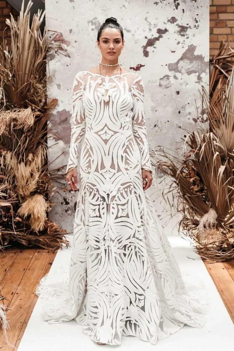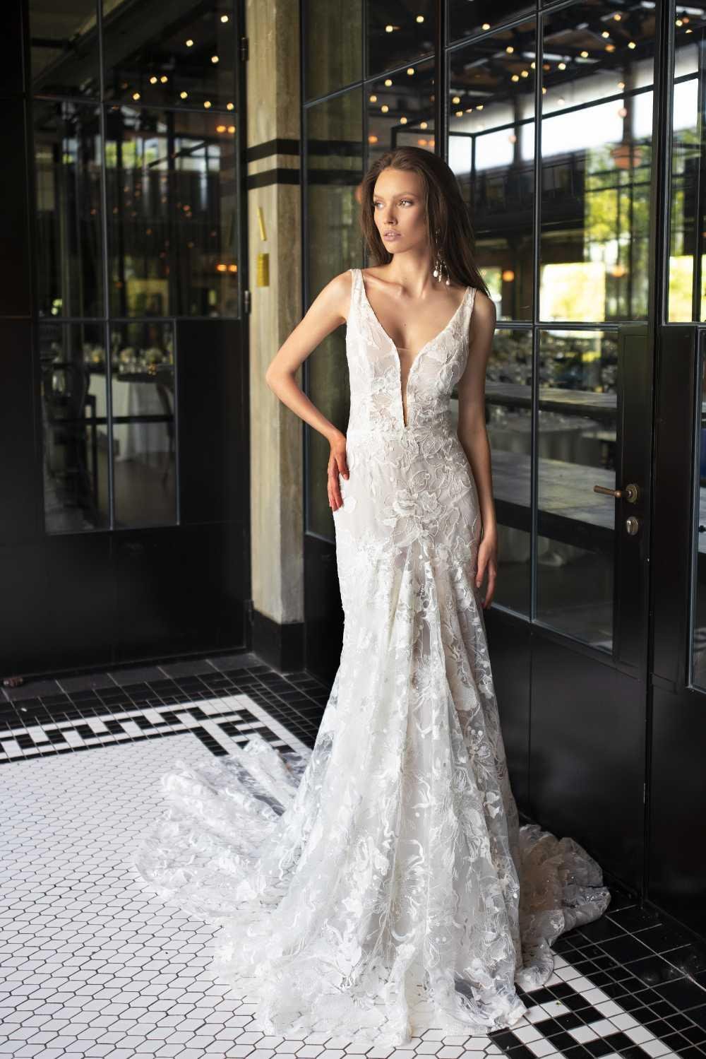 These are gently used store samples that are either discontinued by the designer or we are selling them to make room for new dresses. All dresses are as-is samples and final sale. Please contact us at hello@moondancebridal.com to purchase. We ship worldwide!