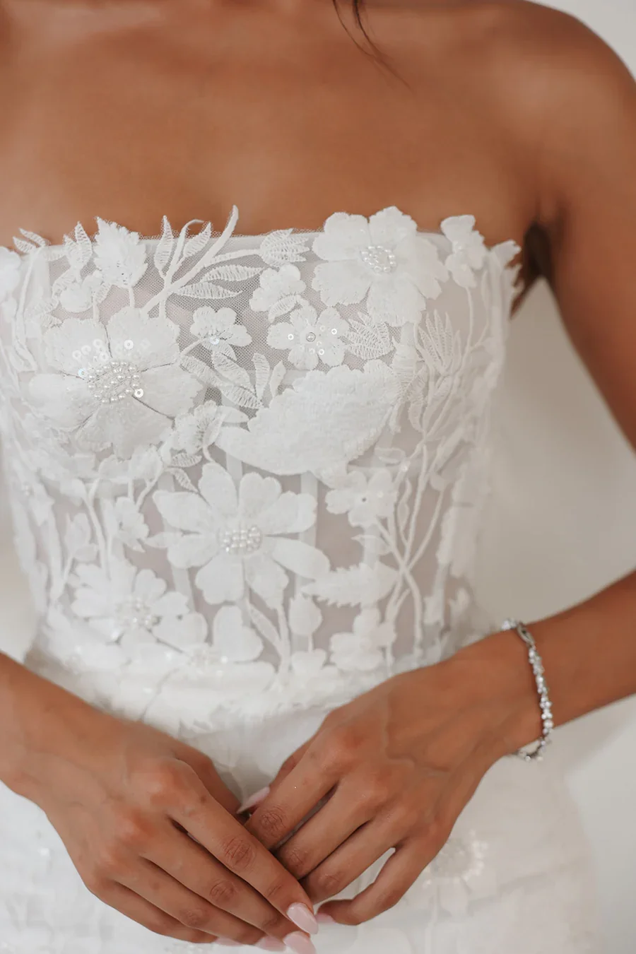 Sample sale gowns are floor samples that are being sold as-is, accepting any minor flaws. Samples are an excellent way to snag a gorgeous dress at a reduced cost, and find the perfect dress for your special occasion. If you would like any more information about a particular gown, we welcome you to contact us with any questions.
